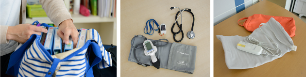 リハビリ用の道具はご利用者様の状態や、できるようになりたい事をお聞きしてひとりひとりに合ったものを使っていきます。また、いつでも出動できるように基本セットやiPad、訪問用の車の整備も欠かせません。