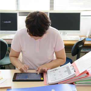 ご利用者様の情報はiPadと個別ファイルで管理しています。訪問時も忘れず持って行き、適切な看護・リハビリに役立てています。