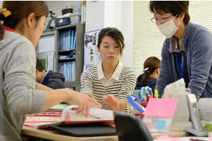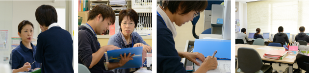 こうなん訪問看護ステーションでは、より良いサービスを提供するために、人員体制や設備の整備、スタッフの育成に努めています。ここでは当ステーションの職場風景をご紹介します。
